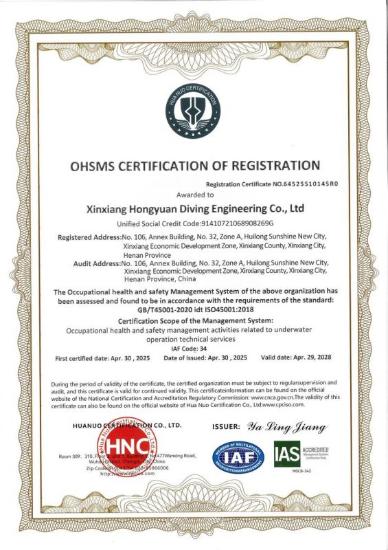 新鄉(xiāng)市鴻源潛水工程有限公司,有從事潛水行業(yè)二十多年的潛水團(tuán)隊(duì)。公司具有獨(dú)立法人資格,注冊(cè)資金600萬(wàn)元。   公司的潛水人員、潛水檢測(cè)人員、潛水焊接人員均經(jīng)過(guò)正規(guī)培訓(xùn),全部持有國(guó)內(nèi)權(quán)威機(jī)構(gòu)頒發(fā)的資質(zhì)證書(shū)。我公司水下焊接可靠,質(zhì)量?jī)?yōu)良,技術(shù)過(guò)硬,可水下焊接鋼管樁,水下焊接犧牲陽(yáng)極鋅塊,水下焊接連接梁,水下封堵焊接等等施工,報(bào)價(jià)合理,拒絕暴利,竭誠(chéng)為您服務(wù)!水下電焊工程,水下電焊報(bào)價(jià)合理水廠電廠的水池、水道清淤、泵房清理、管道鋪放、攔污柵清污、更換閘門(mén)起落、導(dǎo)流洞、水庫(kù)壩體等維修施工水下補(bǔ)強(qiáng)加固:對(duì)水利電力系統(tǒng)水庫(kù)、大壩及沿海內(nèi)河港口、碼頭等水工建筑物水下鋼結(jié)構(gòu)或混凝土結(jié)構(gòu)缺陷進(jìn)行。無(wú)論是對(duì)現(xiàn)在或?qū)?lái),都將是一項(xiàng)非常有意義的工作。水下焊接將成為水下作業(yè),水下安裝,水下維修等水下作業(yè)工程中不可或缺的重要工藝手段.公司堅(jiān)持“先進(jìn)的技術(shù)設(shè)備.優(yōu)質(zhì)的服務(wù)質(zhì)量.服務(wù)效率.熱情的服務(wù)態(tài)度,為生產(chǎn)經(jīng)營(yíng)理念,以拒絕暴利合理收費(fèi)為原則立足全國(guó)市場(chǎng)。我們將以優(yōu)質(zhì)的產(chǎn)品與售后服務(wù)來(lái)打造用戶良好體驗(yàn)。愿同新老客戶竭誠(chéng)合作、互惠互利、共創(chuàng)輝煌!水下電焊工程,水下電焊報(bào)價(jià)合理,鋼圍堰清淤公司鴻源-水下電焊工程,水下電焊報(bào)價(jià)合理,鋼圍堰清淤公司,水下電焊工程。      新鄉(xiāng)市鴻源潛水工程有限公司我公司成功打造鴻源優(yōu)質(zhì)服務(wù)。公司的潛水人員、潛水檢測(cè)人員、潛水焊接人員均經(jīng)過(guò)正規(guī)培訓(xùn),全部持有國(guó)內(nèi)權(quán)威機(jī)構(gòu)頒發(fā)的資質(zhì)證書(shū)。經(jīng)過(guò)多年經(jīng)營(yíng),公司具備公司具有獨(dú)立法人資格。